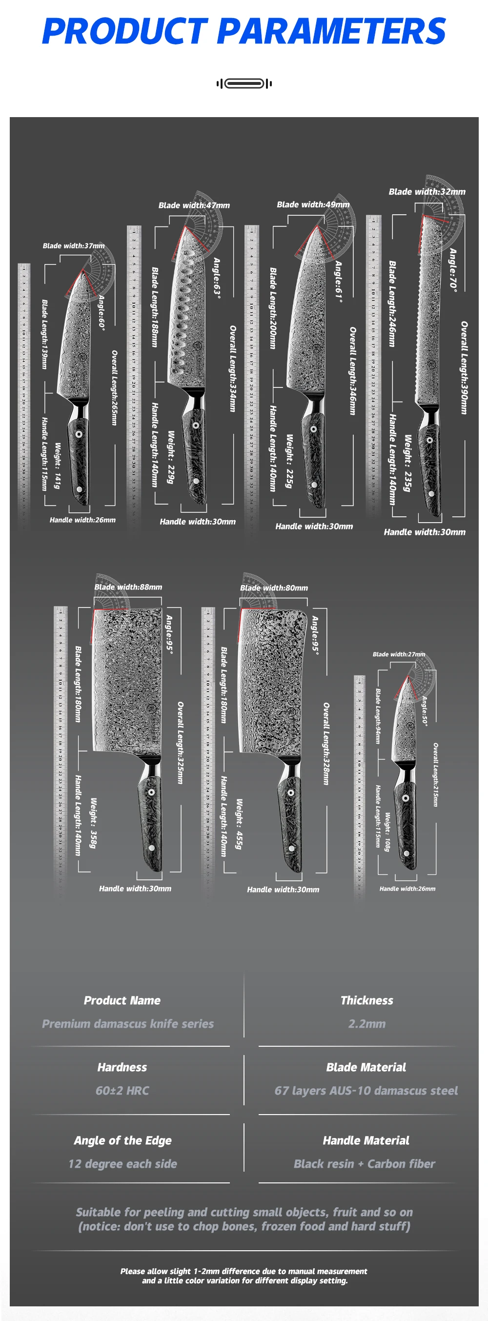 Blade Length: 10-11.9in,8-9.9in,6-7.9in,4-5.9in