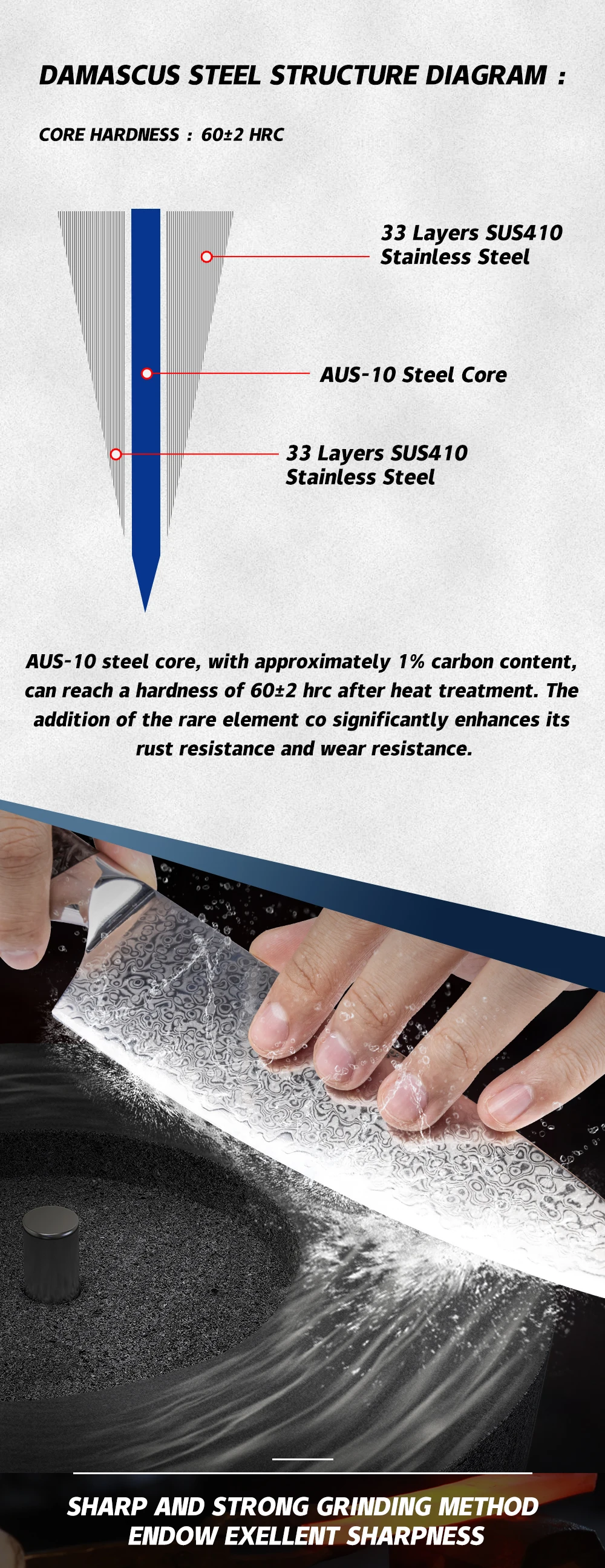 We are experienced in the OEM & ODM development of the high-end quality material, like Damascus steel ,Germany steel 1.4116.